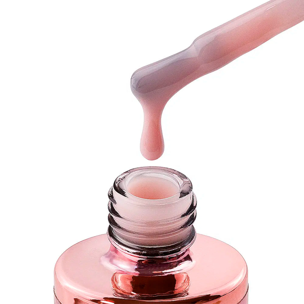 Eine selbstnivellierende Aufbau-Basis in einem warmen milchig pfirsich-rosa Ton, entwickelt für makellose natürliche Maniküren, French-Designs und den Babyboomer-Effekt.